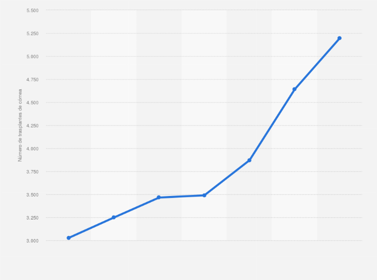 A continuación se puede ver una gráfica del número de personas que han recibido un trasplante de córnea en España entre el 2011 y el 2017.